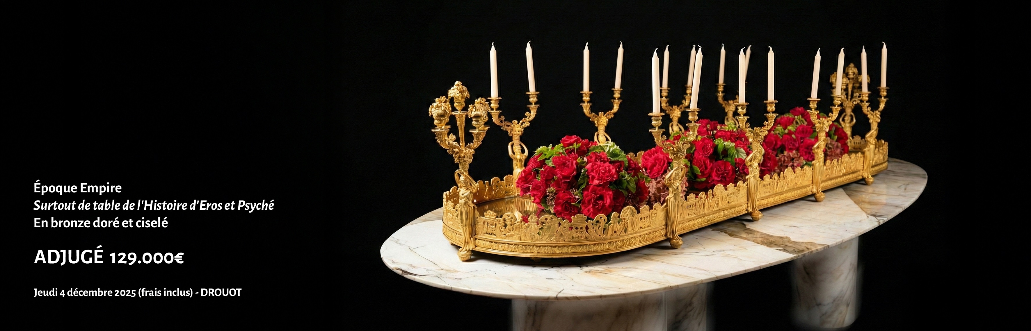 - Table centerpiece depicting the Story of Eros and Psyche, in chased and gilded bronze - €129,000 on December 4, 2025,