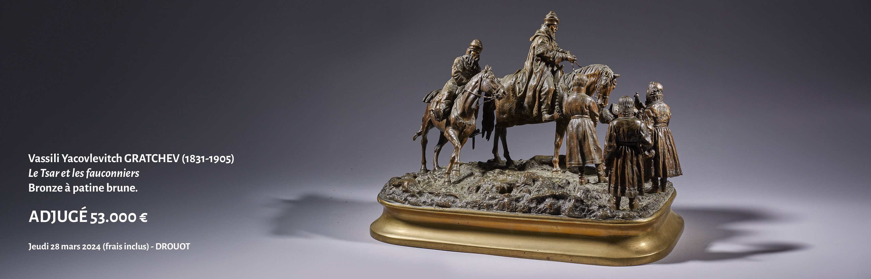 - A Consulat period patinated and gilt bronze clock with a chariot, known as the allegory of Louisiana - Sold for €37,000 on October 26, 2021,