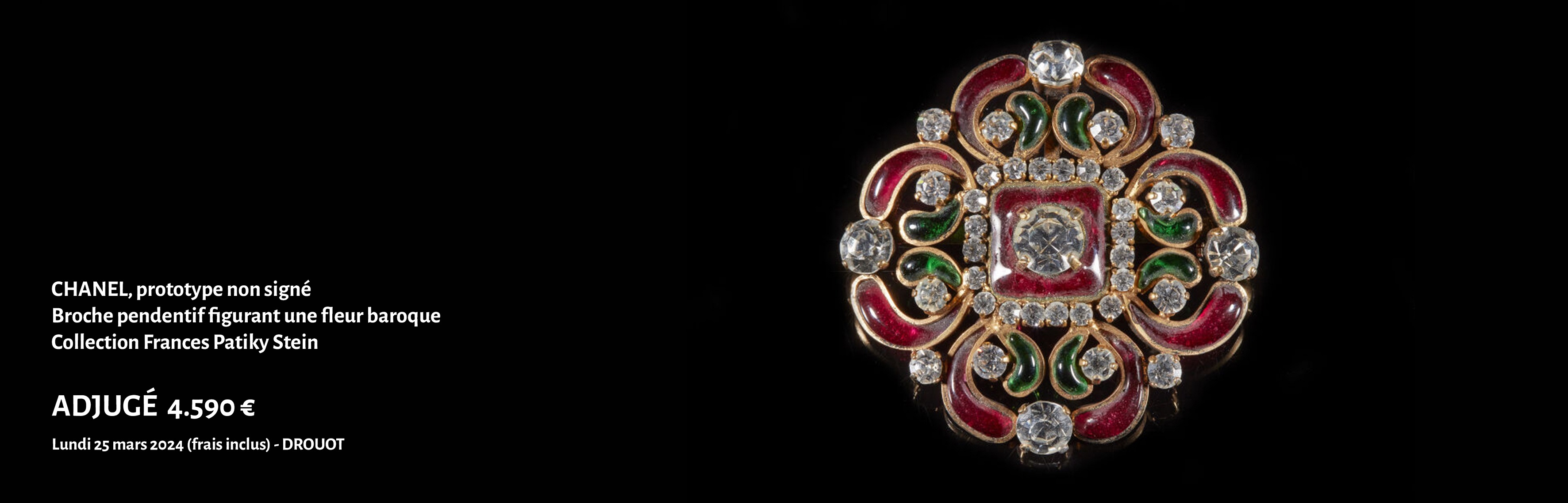 Le 14 octobre 2023, la garde-robe de Frances Patiky STEIN, styliste, rédactrice de mode pour Vogue et créatrice de bijoux pour CHANEL, a suscité l’intérêt des collectionneurs avec la vente d’un sac Kelly 35 en crocodile pour 8.134€ et d’une grande étole en patchwork d'ORYLAG pour 1.246€.